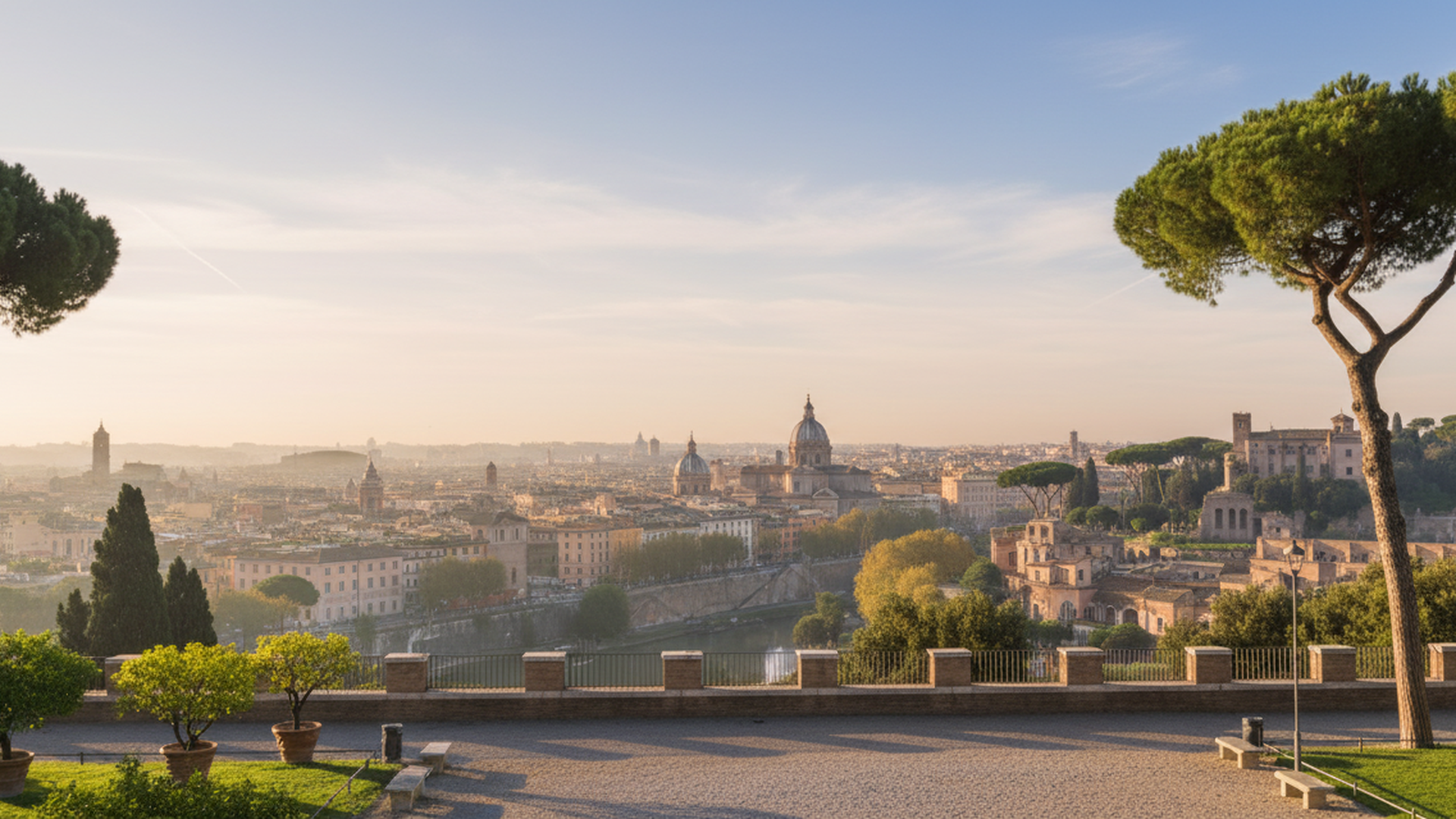Parco panoramico che offre una vista mozzafiato su Roma.